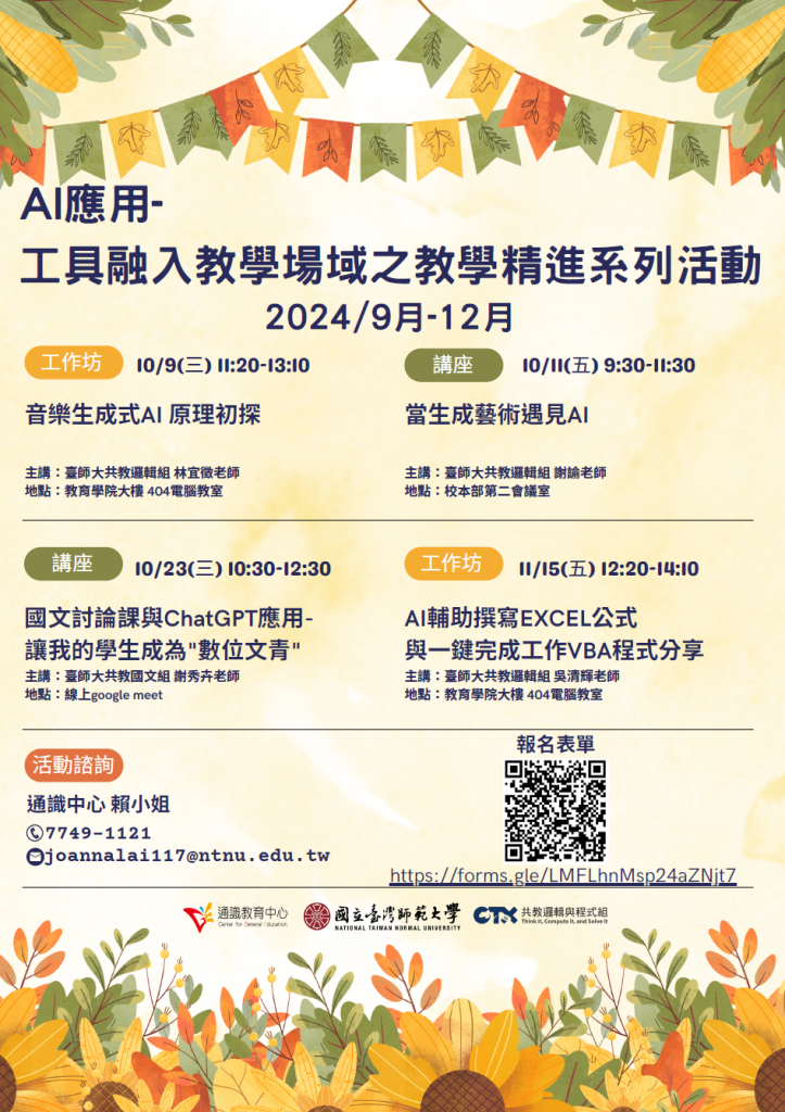 【活動轉知】10/9(三)11:20-13:10 音樂生成式AI原理初探/邏輯組 林宜徵老師