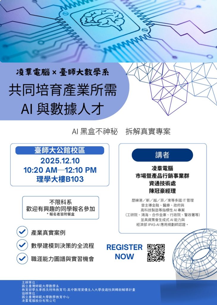 【 凌羣電腦 x 臺師大數學系|AI 黑盒不神秘 拆解真實專案 】