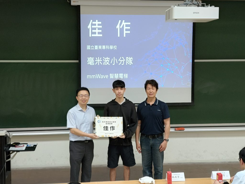 隨後進行頒獎儀式,表揚本屆表現優異之團隊,肯定其於毫米波雷達訊號處理、AI模型設計與創意整合上的卓越成果。典禮亦邀請三組獲獎隊伍進行經驗分享,展現其創新應用與實作歷程: