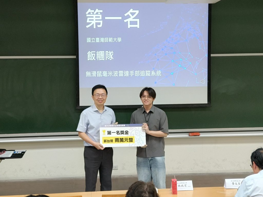 由國立臺灣師範大學跨域科技產業創新研究學院主辦之「第二屆毫米波雷達AI創意應用賽」頒獎典禮於今(11)日隆重舉行。本屆競賽共吸引來自全臺19所大專校院、85支隊伍參與,包含研究生組9隊、混合組5隊及大學生組71隊,展現毫米波雷達結合人工智慧於多元場域的創新應用潛力。